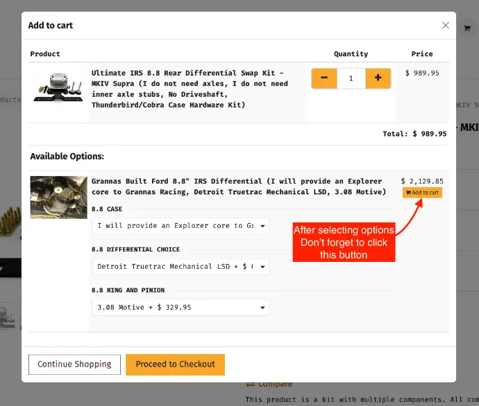 When you add our kit to the shopping cart, it will give you the option to add a built diff to the order. You will need to select the case type, the LSD type, and gear ratio and then click the add-to-cart button. See screenshot example on this page.